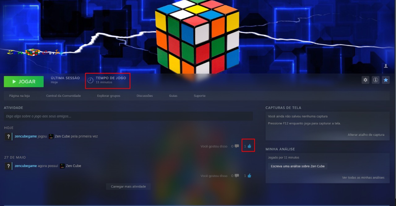 Página do jogo Zen Cube liberada para avaliação, divulga ai pessoal para seus amigos e coloca uma avaliação sua no site do jogo para me ajudar por favor. Coloque o jogo na sua lista de desejos.